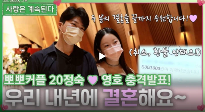 나는솔로 20기 정숙과 영호의 결혼 소식, 앞으로도 많은 관심과 응원 부탁드립니다.
